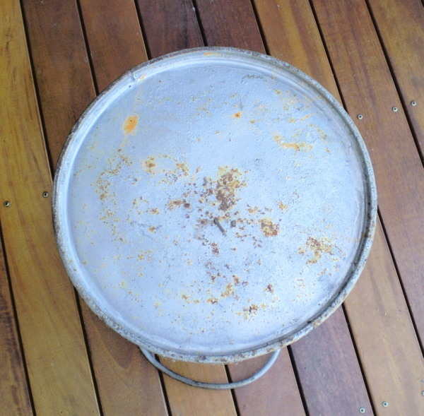 This old steel milk can is marked VIP??? Leicester British Made Supplied by STDA. It has the original lid, and measures 44cm high not including the handle. There are some areas of surface rust and a dent in the side. It has the number 562 hand painted, and the number 10 incised into paint also.